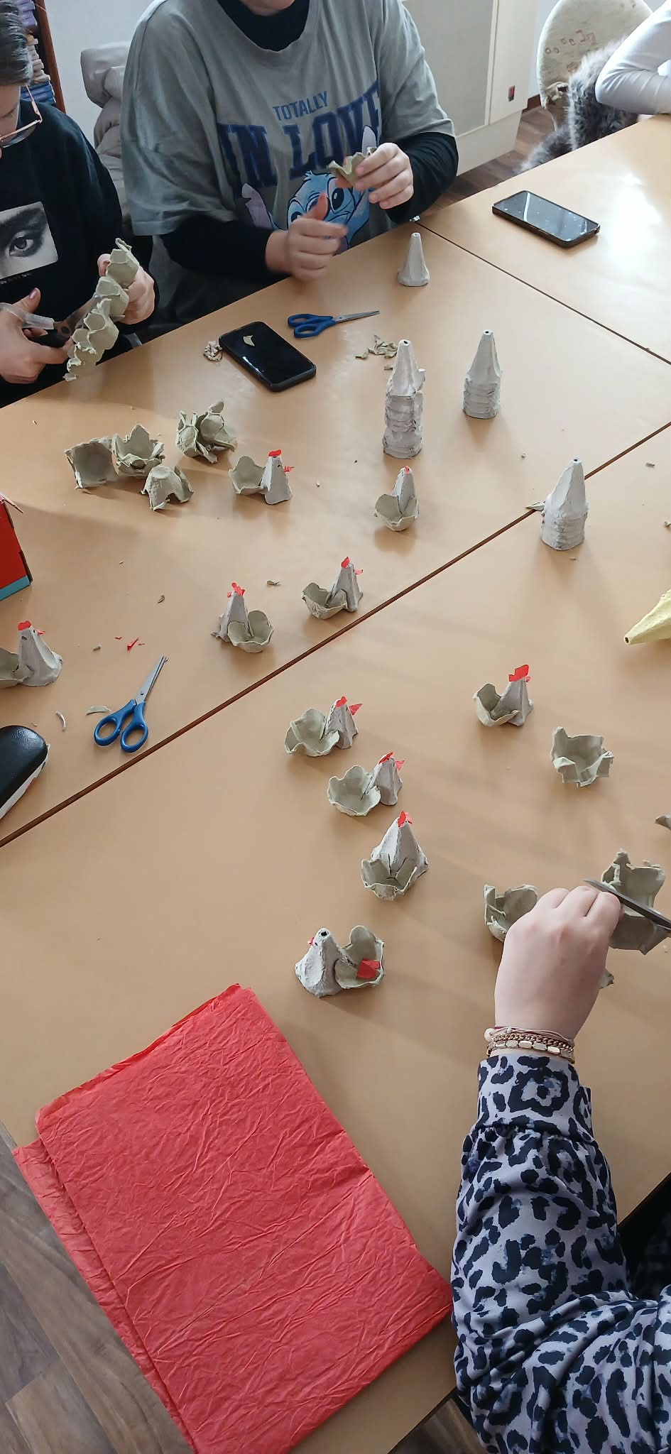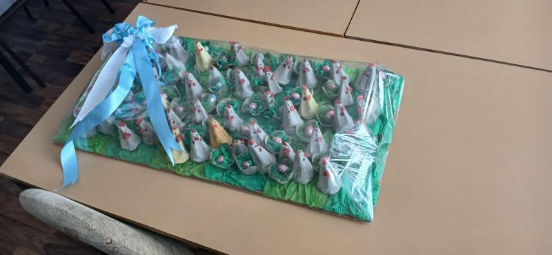 A városi bölcsőde vezetője, Horváthné Szabó Edit köszönte a kezdeményezést, és örömmel fogadta a tojástartóból készült figurákat, amiket a tanulók maguk vittek el a kisújszállási bölcsődébe.